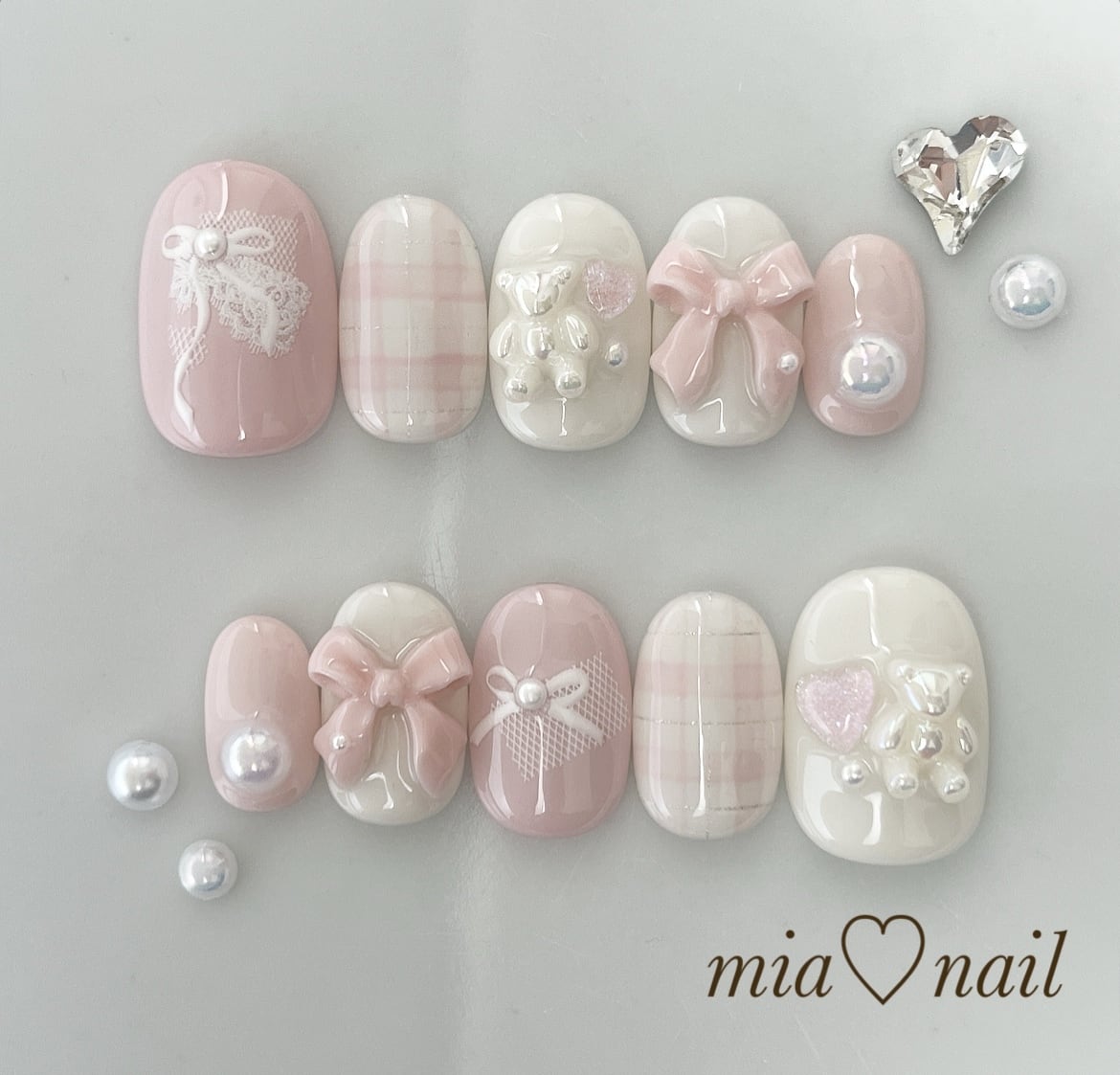 ご覧いただきありがとうございます♫ mia❤︎nailです♫ ショップ情報をよくお読みの上で ご購入いただきますようよろしくお願いします。 ♡発送までの日数はショップ情報をご確認ください。 ♡お急ぎの場合+¥1000でお急ぎ作成も可能ですのでご相談くださいませ。 ♡お問い合わせより当日を含め2日以内にお返事をお願い致します。2日以内にお返事がない場合はスムーズなお取引を心がけているため今後のオーダーはお断りしております。ご了承くださいませ。 ♡チップ、サイズ変更等がある場合はご購入時に必ず変更点を選択していただきご購入手続きの際備考欄にご希望のチップ、サイズ番号の記載をお願い致します。 ショートオーバル 親指より1.6/1.2/1.3/1.2/0.8 多少のズレはご了承ください。 こちらがサイズ表となっております♫ ご確認ください↓ https://gsfr3.app.goo.gl/9Av4Ni menu*・゜ ★イニシャルを含むデザイン イニシャル変更¥100 ※イニシャルに変更がない方へ こちらで決めさせていただきますので お写真のイニシャルとは異なる場合がございます。 ★サイズ変更+¥100 ※チップ変更される場合はサイズ変更(+100円)も必要となります。 ★チップ変更 ♡ミディアムオーバル+¥100 ♡ベリーショート+¥100 ♡スキニースクエア+¥200 ♡スキニーオーバル+¥200 ♡ロングラウンド+¥200 ♡フラットレギュラー+¥200 ♡レギュラーポイント+¥200 ♡レギュラーオーバル¥+200 ♡ロングオーバル+¥200 ♡ロングポイント+¥200 ♡バレリーナ+¥200 ◆チップ変更選択について ※+¥100のものはミディアムオーバル、ショートオーバル、ベリーショートの3種類になります。 ※+¥200のものはロング類を選択してください。 ★デザイン変更+¥300〜 発送方法は定形外での発送となります。 その際、壊れないようにプチプチの袋で包んでおりますが、万が一割れてしまった場合や配達中のトラブル、未着等責任を負いかねますのでご了承ください。ご不安な場合はオプションで追跡や宅急便での発送もございますのでお申し付けください。 〜オーダーの流れ〜 ご希望のデザイン、ご要望をお聞きします。 ↓ お支払い(お支払い順での作成となります) ↓ 作成 ↓ 発送 ご不明な点がありましたらお気軽にお問い合わせください♫ #ネイルチップ