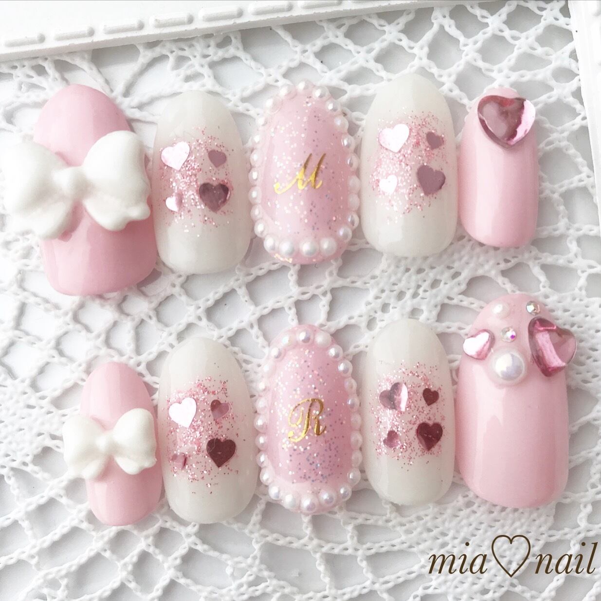 ゆめかわいい〜ピンクラメのリボンハートネイル