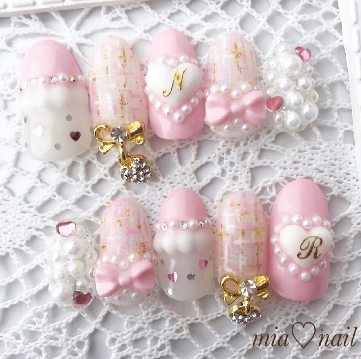 ゆめかわいい〜ツイードピンクのリボンネイル