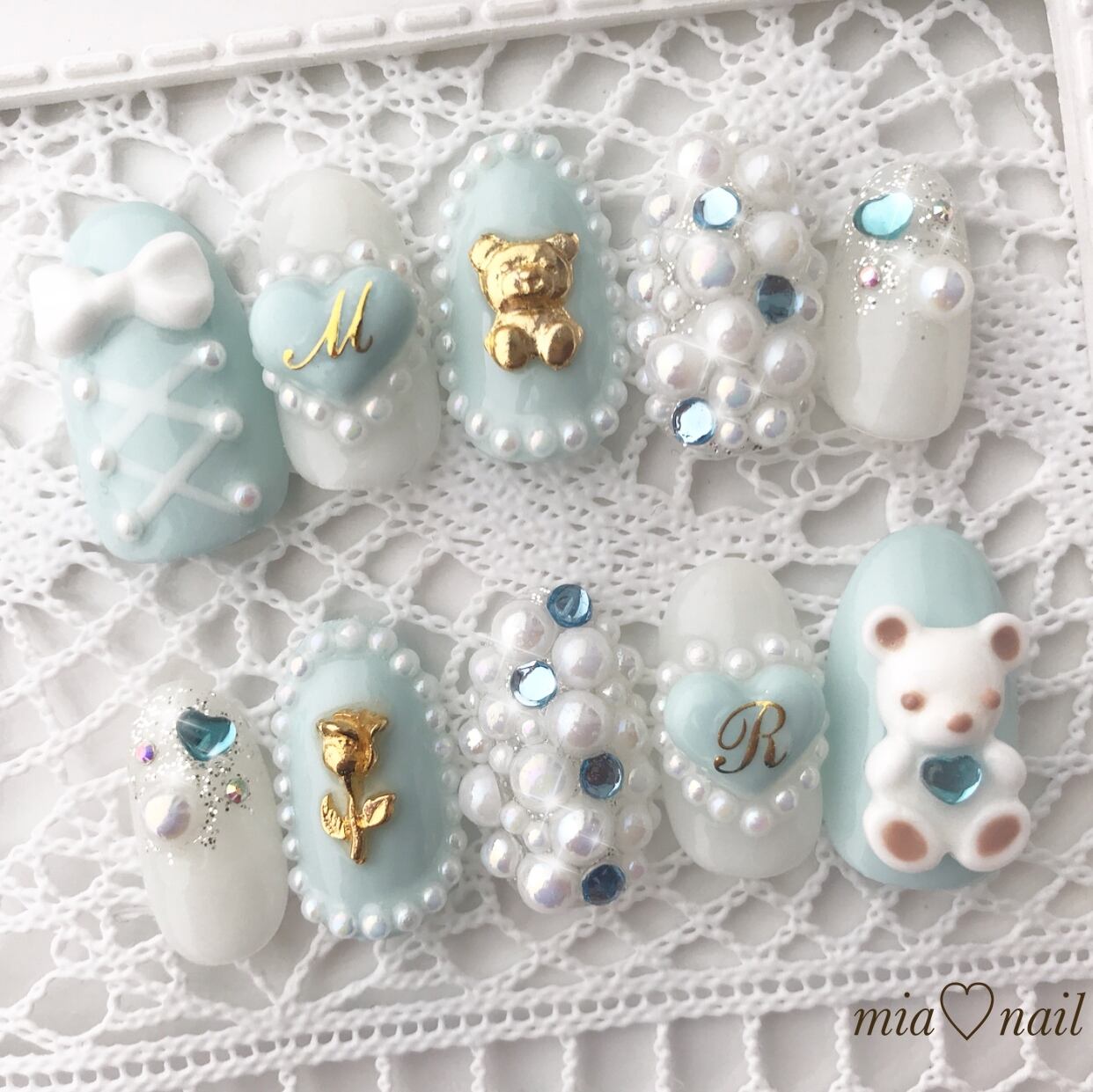 ゆめかわいい〜シャーベットブルーのキラキラネイル