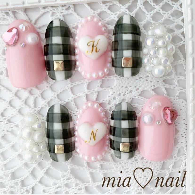 ゆめかわいい〜ギンガムチェックのハートネイル