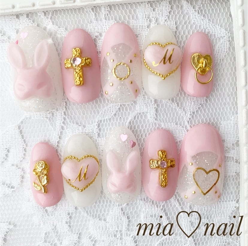 ゆめかわいい〜キラキラピンクのバニーちゃんネイル
