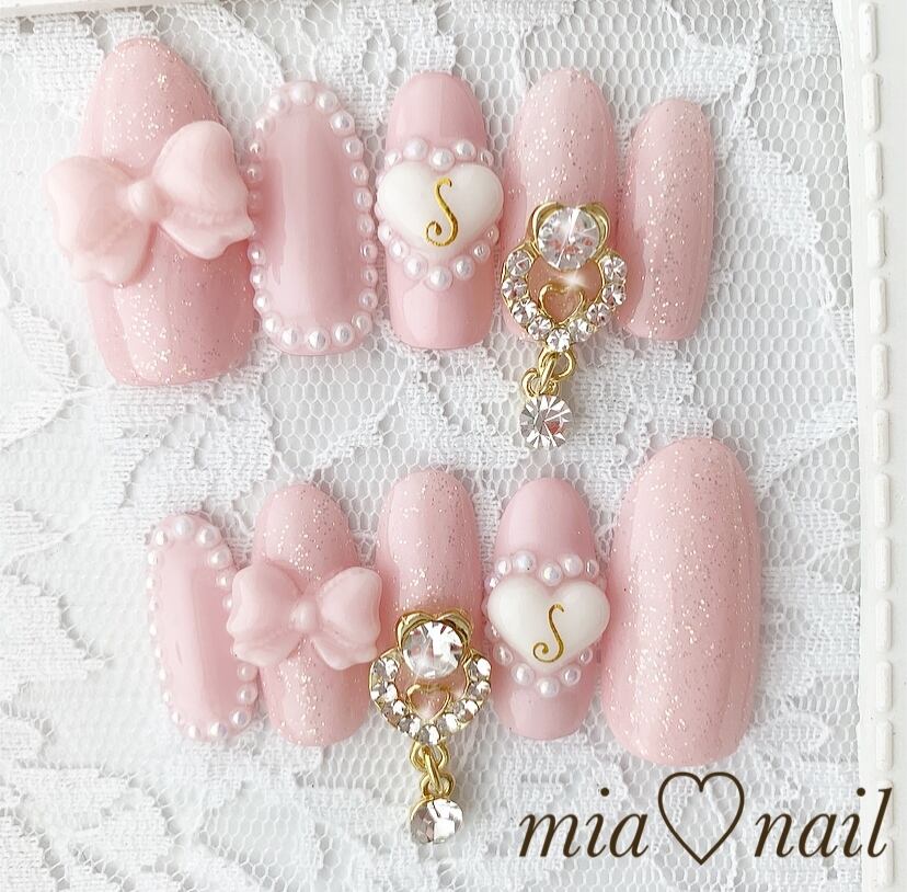 ゆめかわいい〜ピンクラメのハートチャームネイル