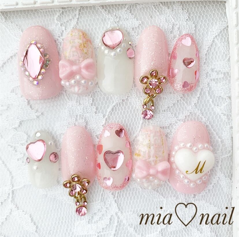 ゆめかわいい〜とっても可愛いピンクと花のチャームネイル
