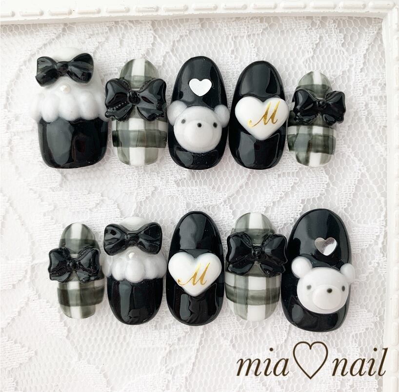ゆめかわいい〜可愛いクマさんとチェックリボンネイル