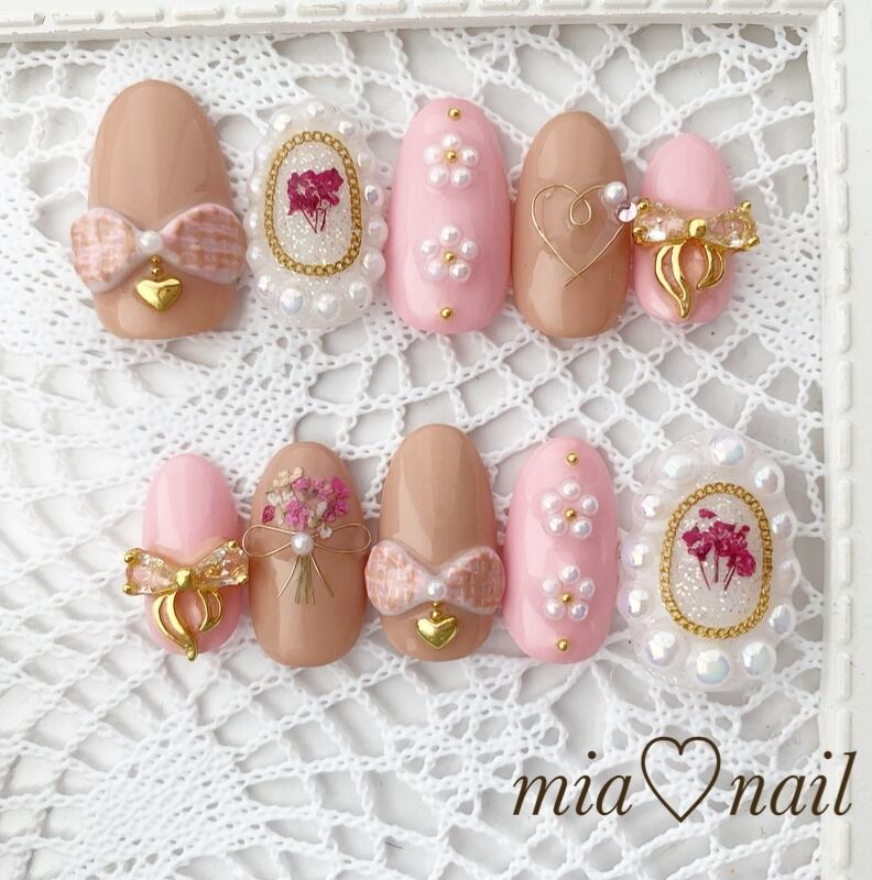 ゆめかわいい〜お花とピンクカラーのガーリーネイル