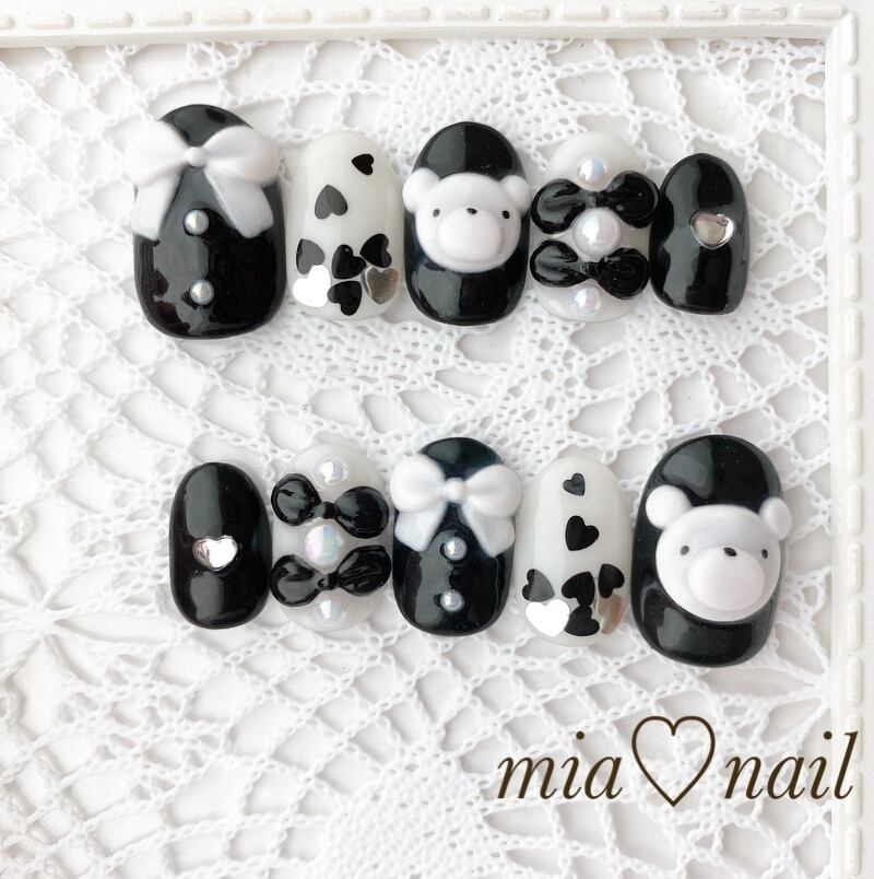 ゆめかわいい〜クマさんとハートホログラムネイル