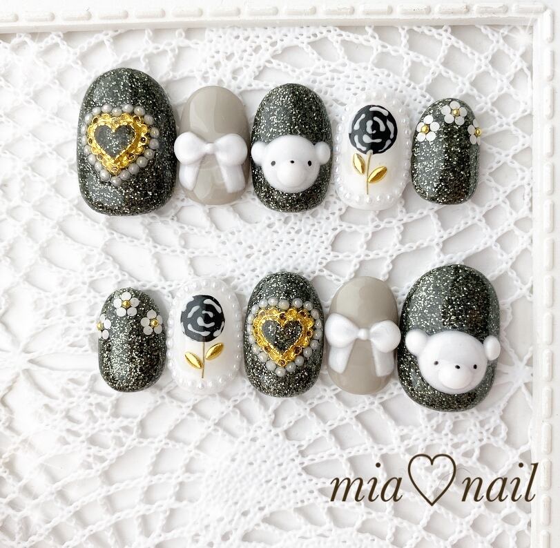 クマさん×ブラックラメネイル