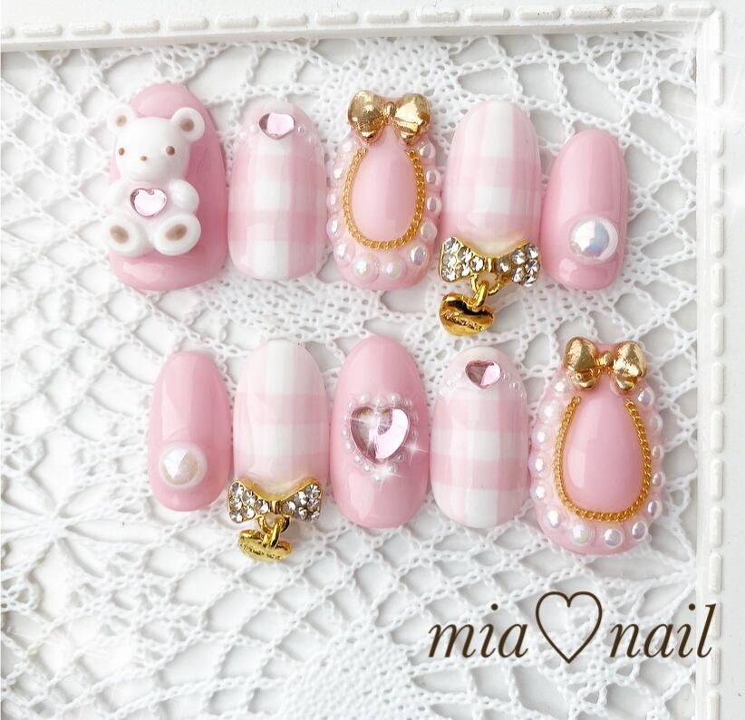 ゆめかわいい〜クマさんとゴールドリボンネイル