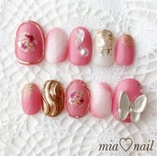 大人可愛いピンクカラーと蝶のフラワーネイル