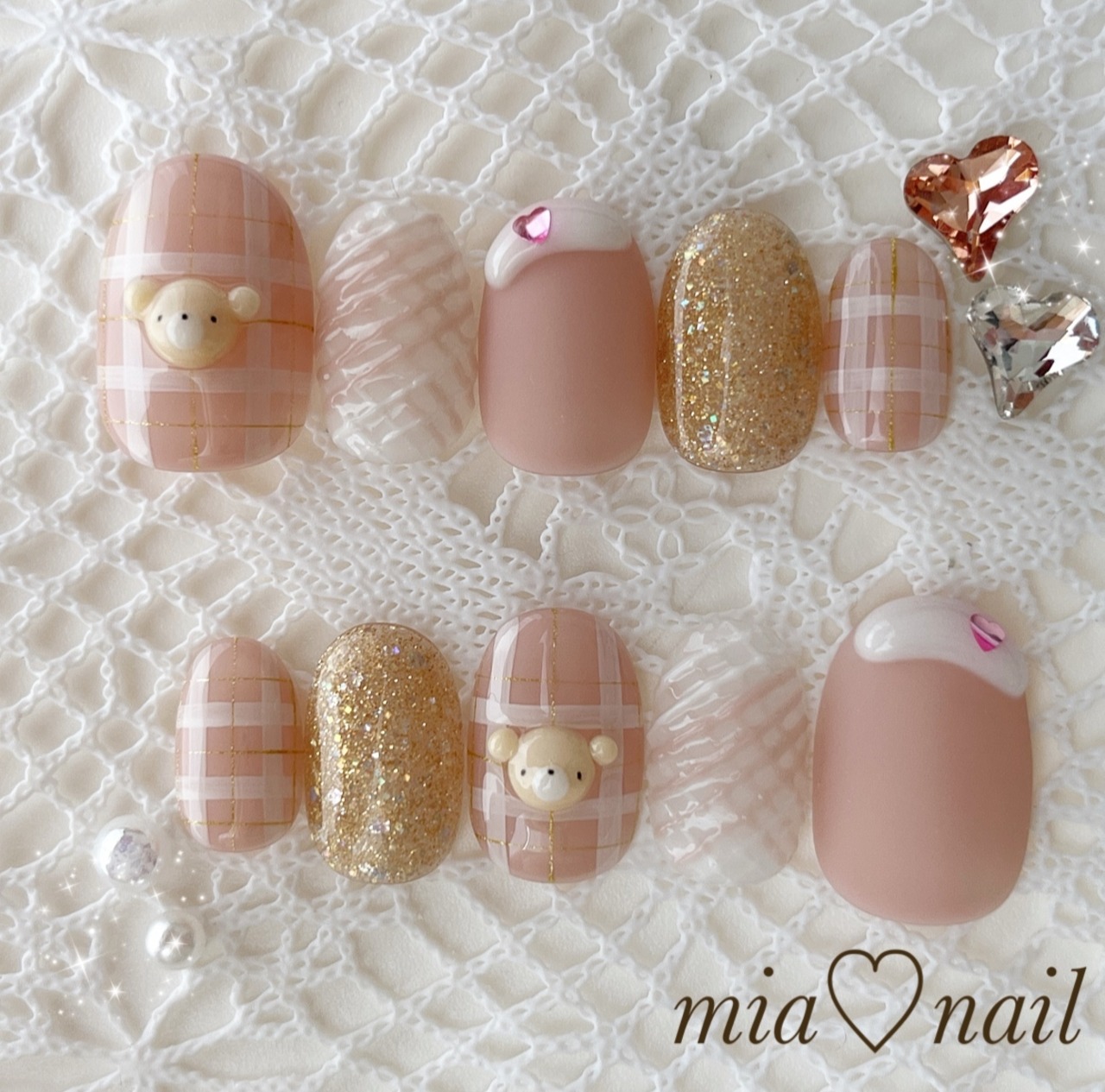 ピンクベージュとクマさんの可愛いウィンターネイル