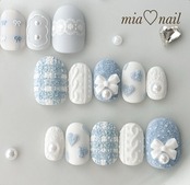 チェックとハートの可愛いもこもこネイル(ベビーブルー)